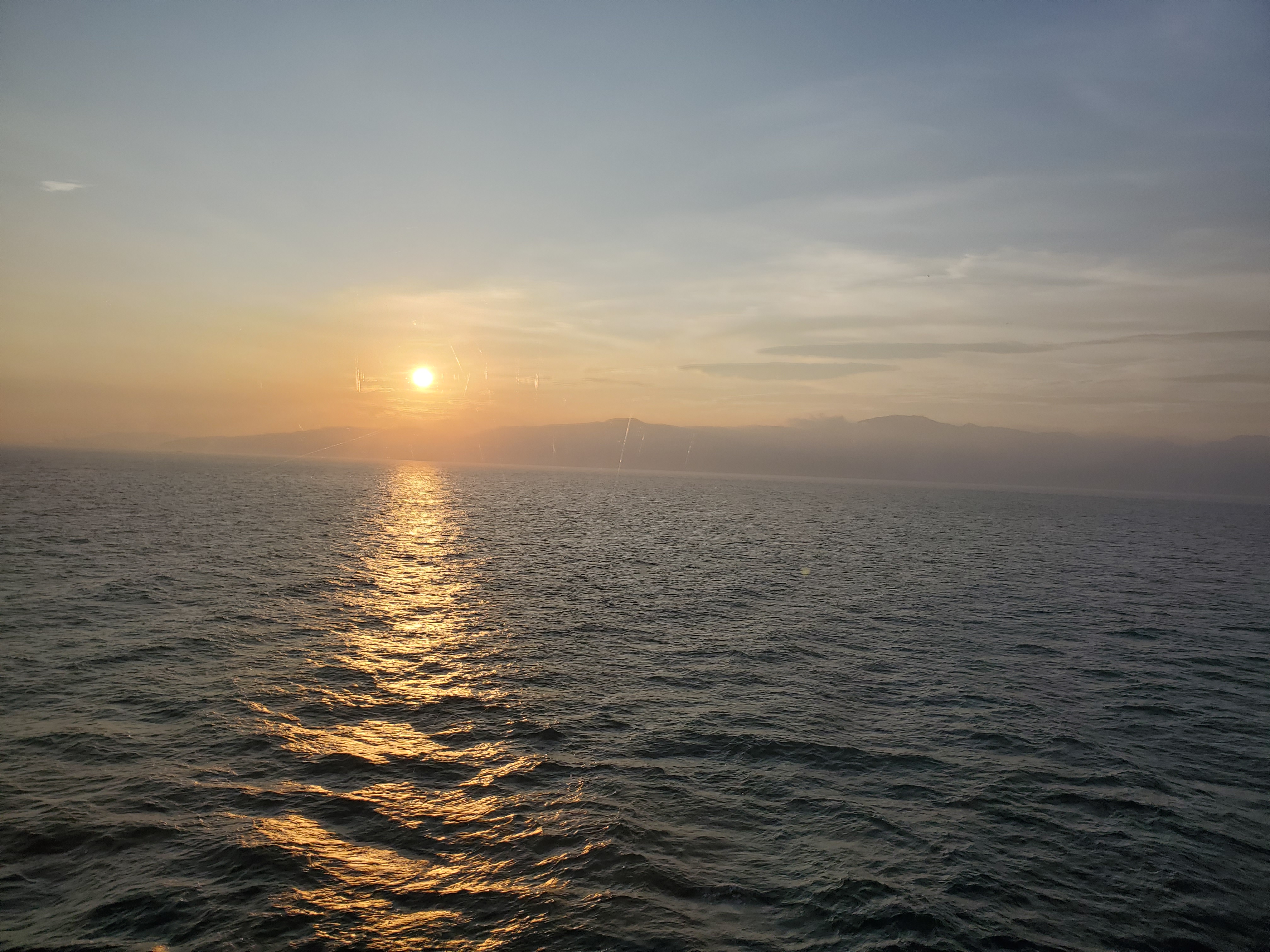 見えてきたのは甲板から見た瀬戸内海に沈む夕日。